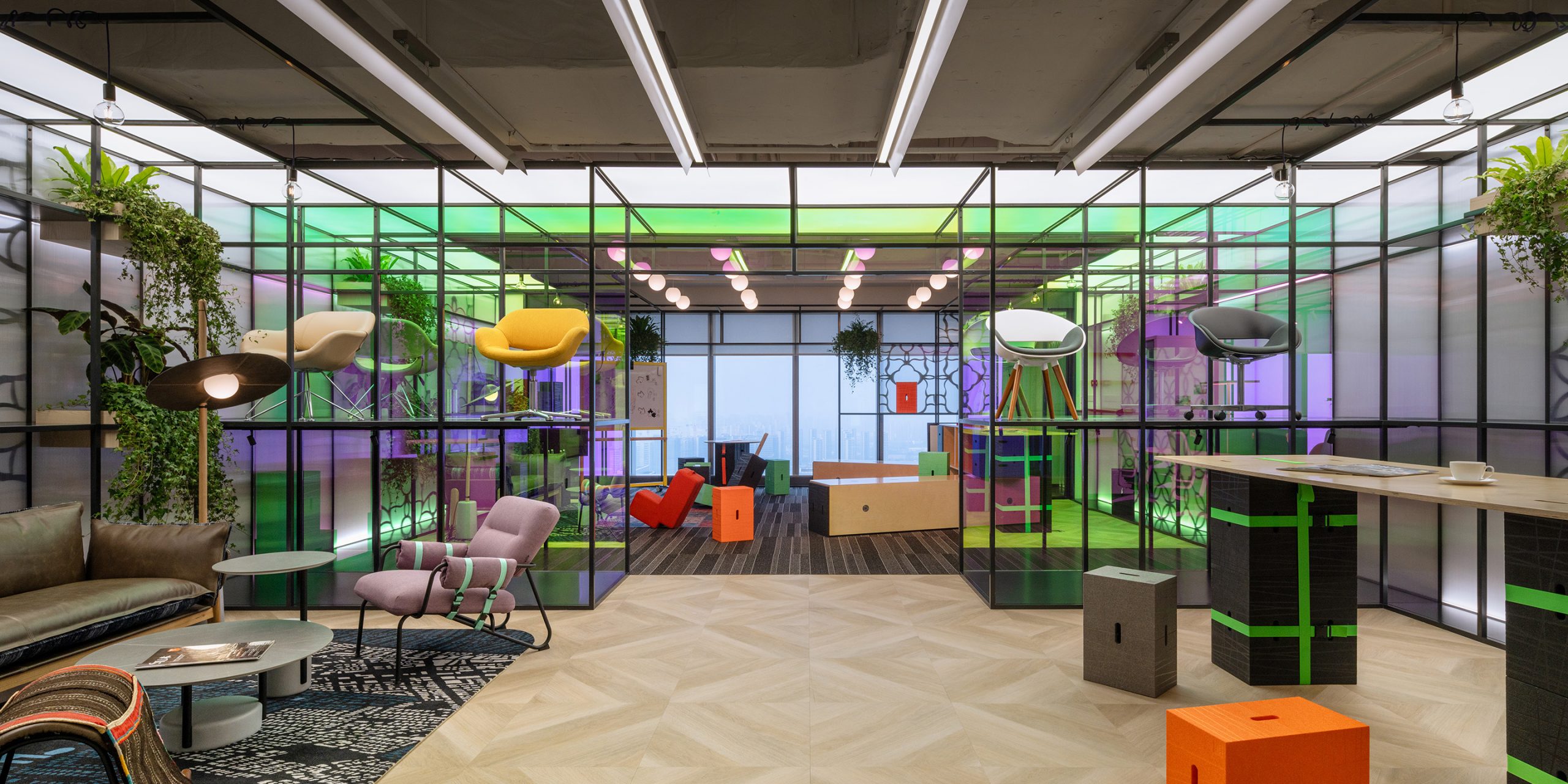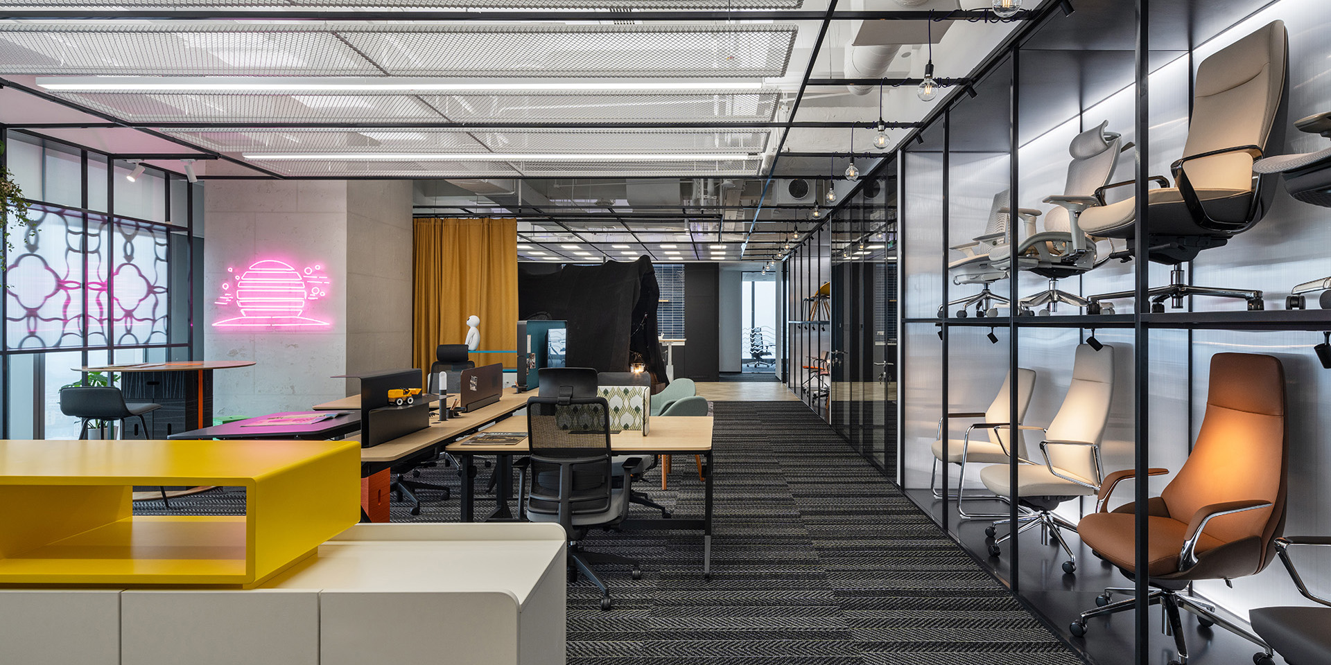 Matsu’s latest showroom-office in Hangzhou once more show the brands aim for inspiring and surprising workspaces. anySCALE has together with the client developed the strategy to combine the furniture dealers functional office with a showroom space to display all their latest products in use. Client and customer share the same experience on eye level.